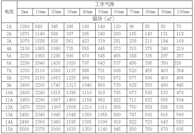 3.6 剩磁:氣隙10mm時≤12mT